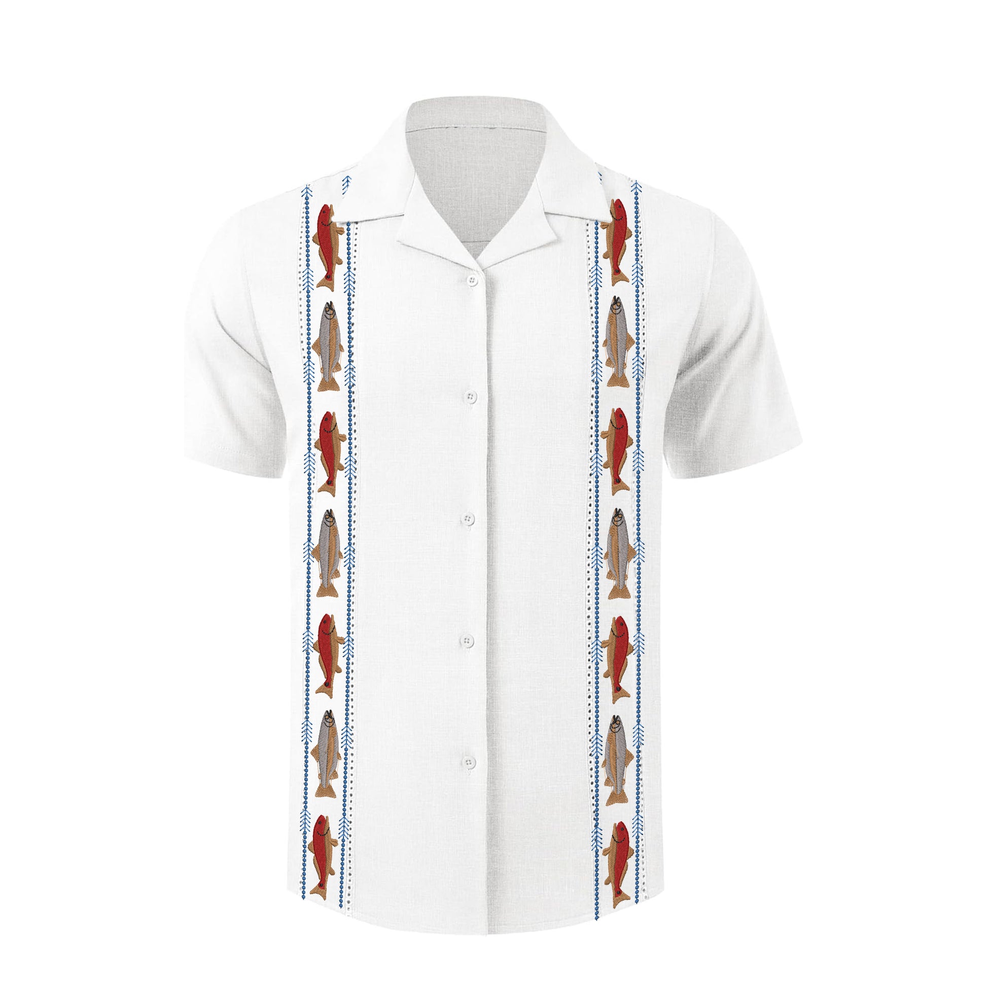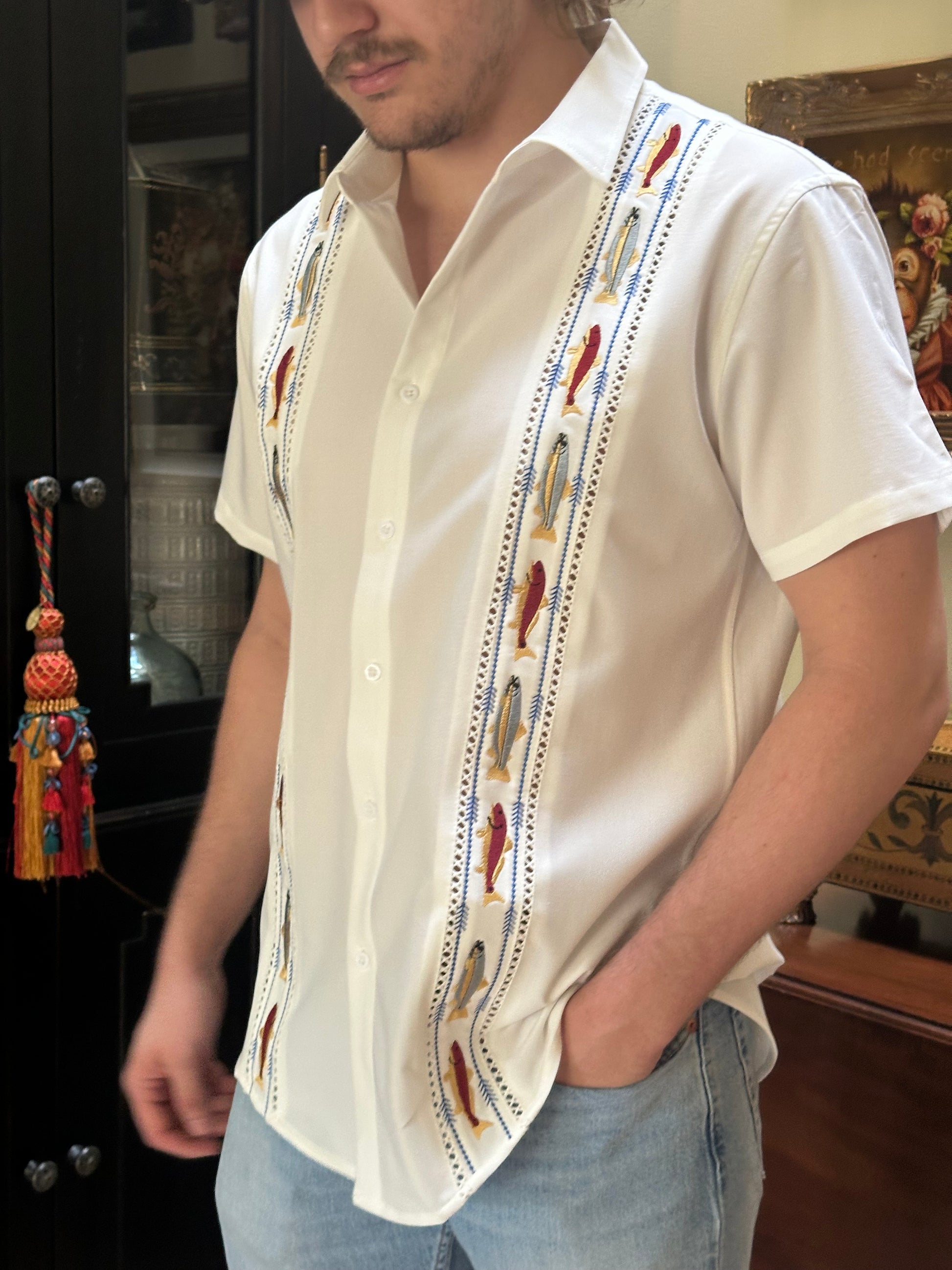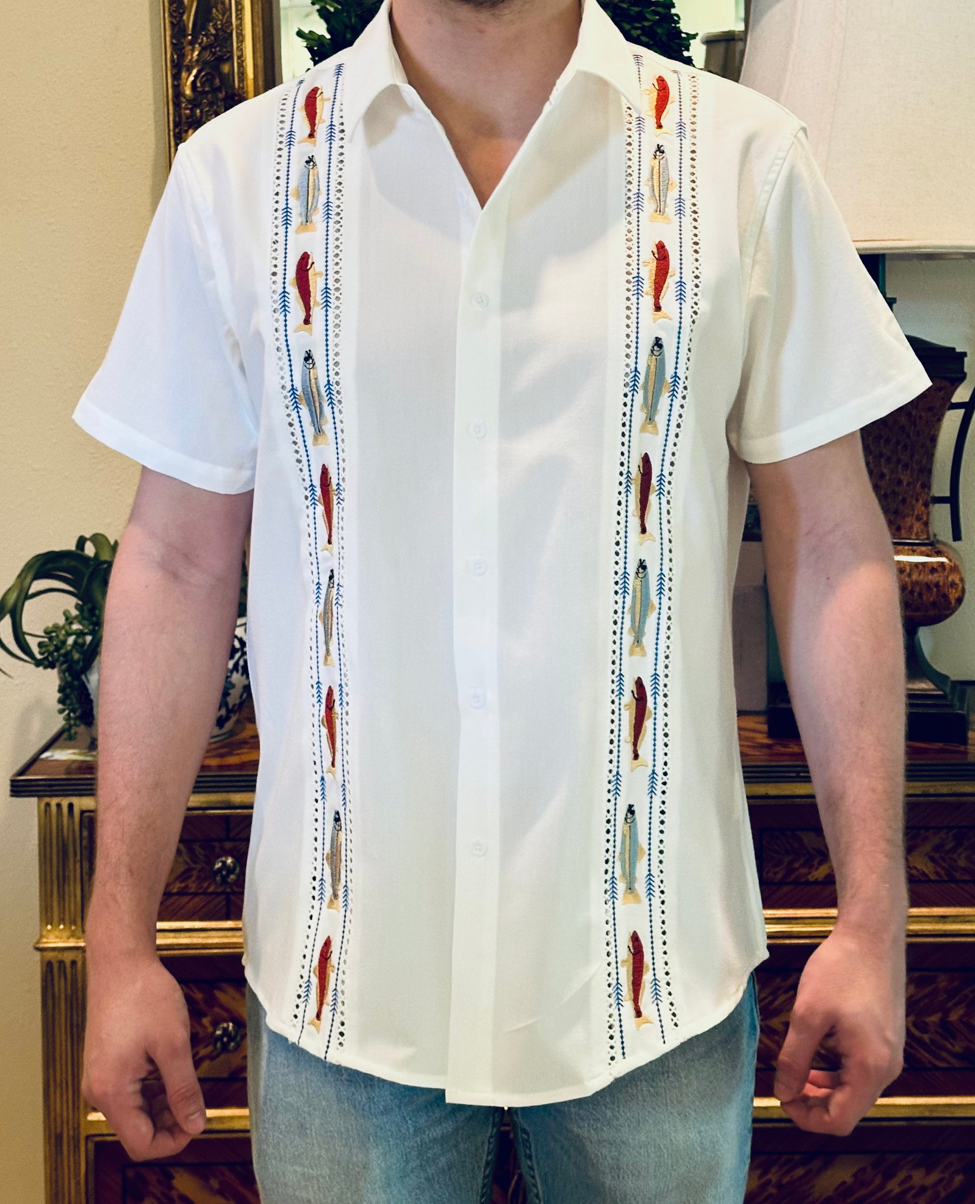 Gulf Coast Bay Guayabera – Redfish & Trout Edition| Classic White, Short Sleeve