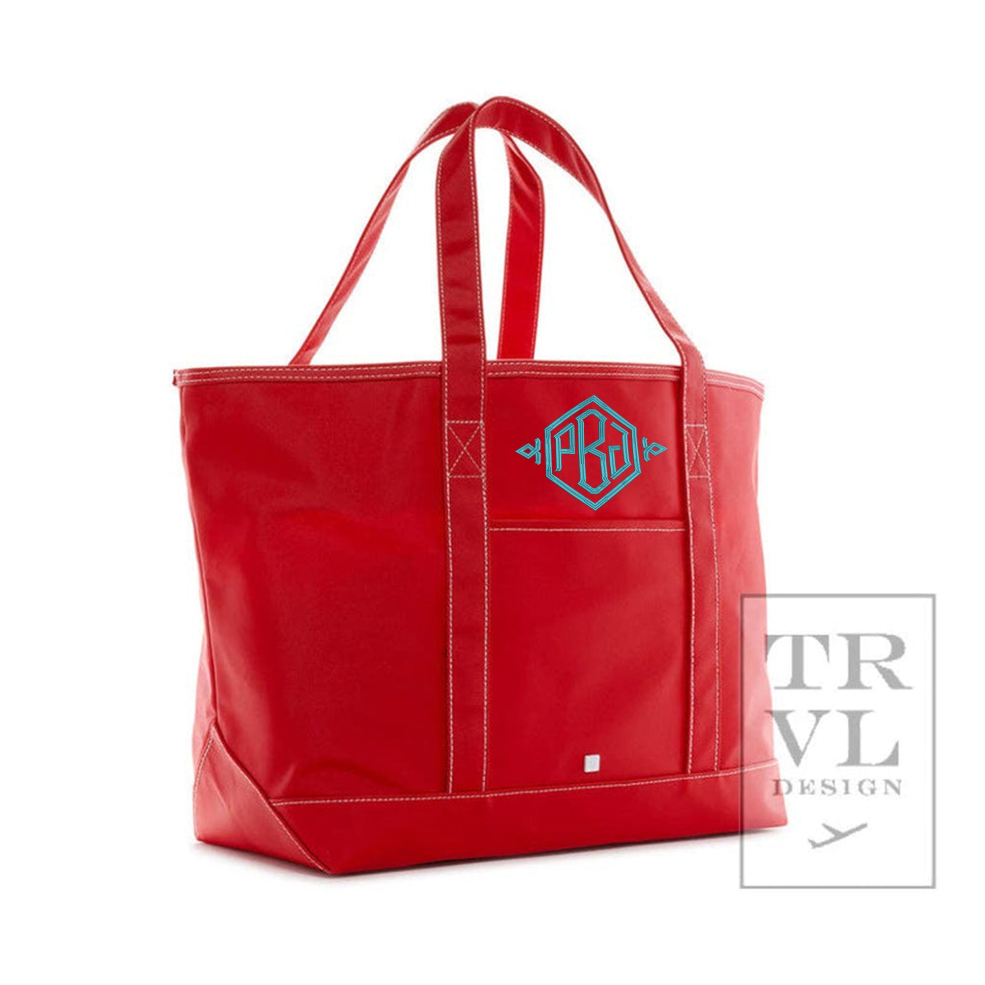 Maxi Tote – Lake Blue or Red Coated Canvas | Large, Eco-Friendly Everyday & Travel Bag