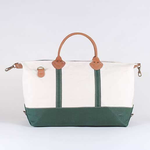 Our Weekender Canvas Travel Duffel with Leather Trim is the bag you’ll reach for again and again. Timeless in design and crafted with heavyweight, eco-friendly cotton canvas, it’s finished with premium rolled leather handles and antique brass hardware for a polished yet rugged look.